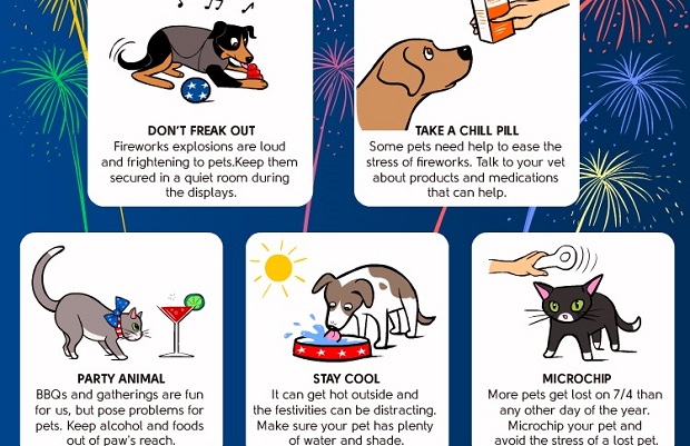 Fourth of July festivities are great fun for us humans, but for pets all the excitement can be quite stressful.